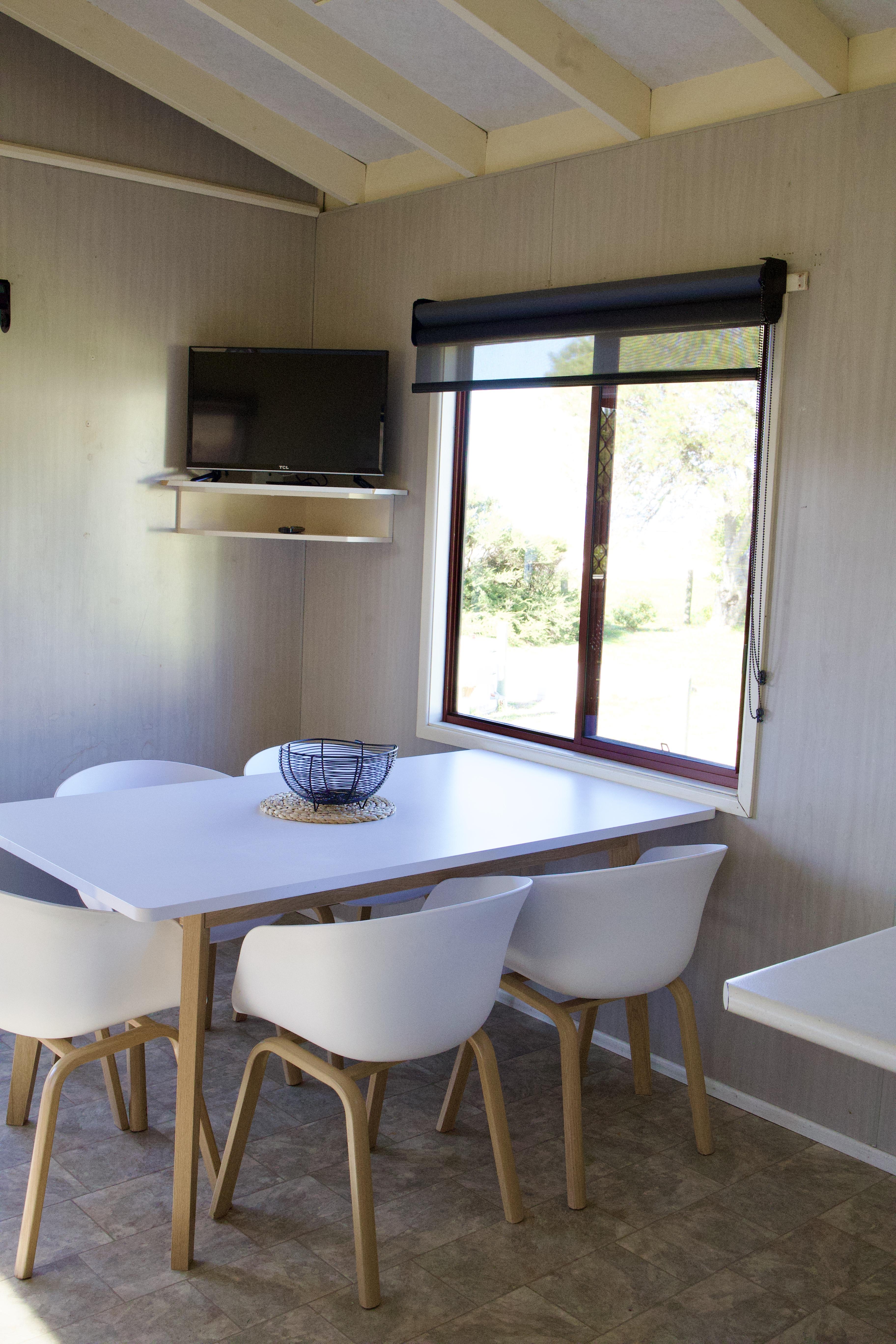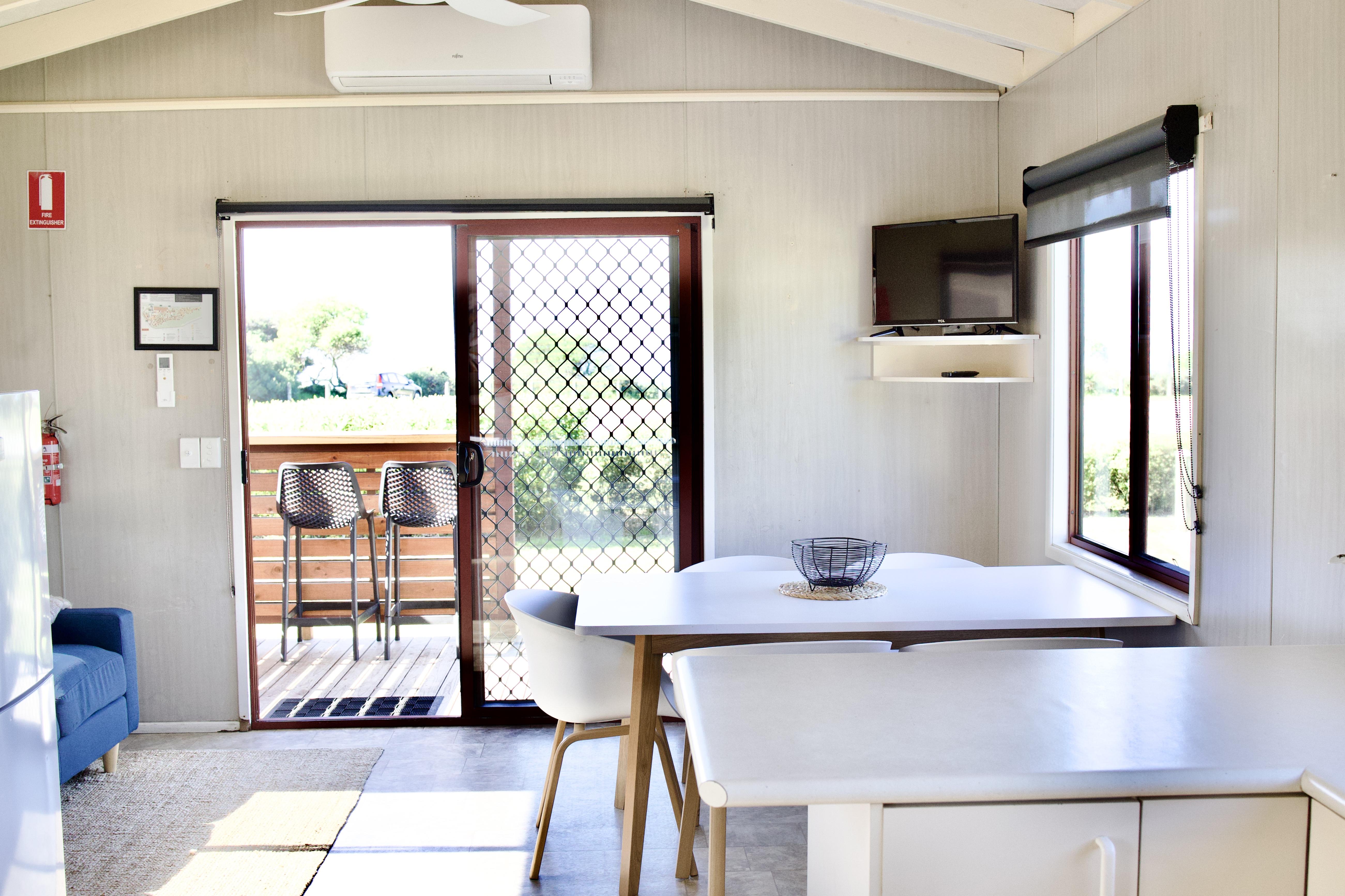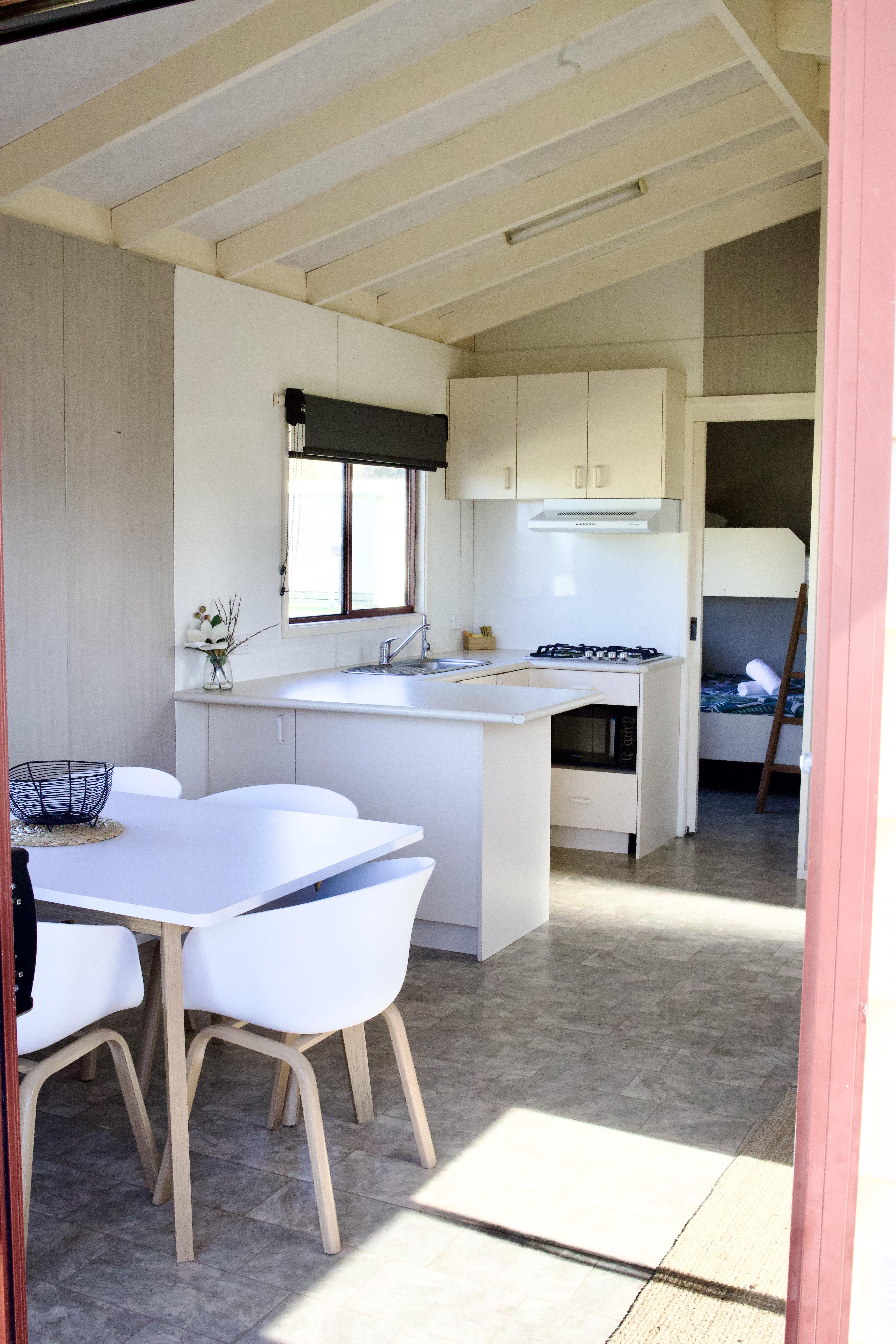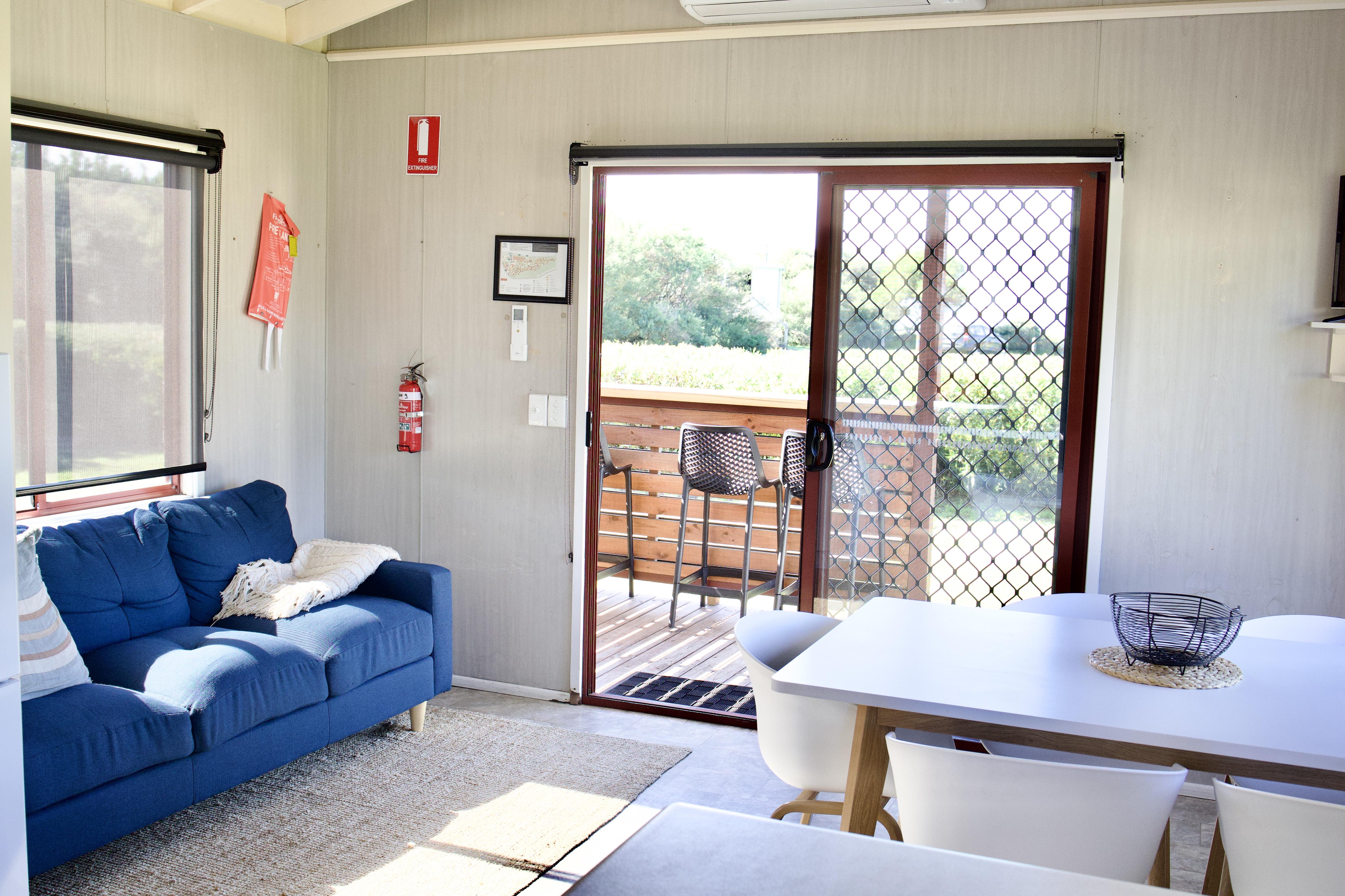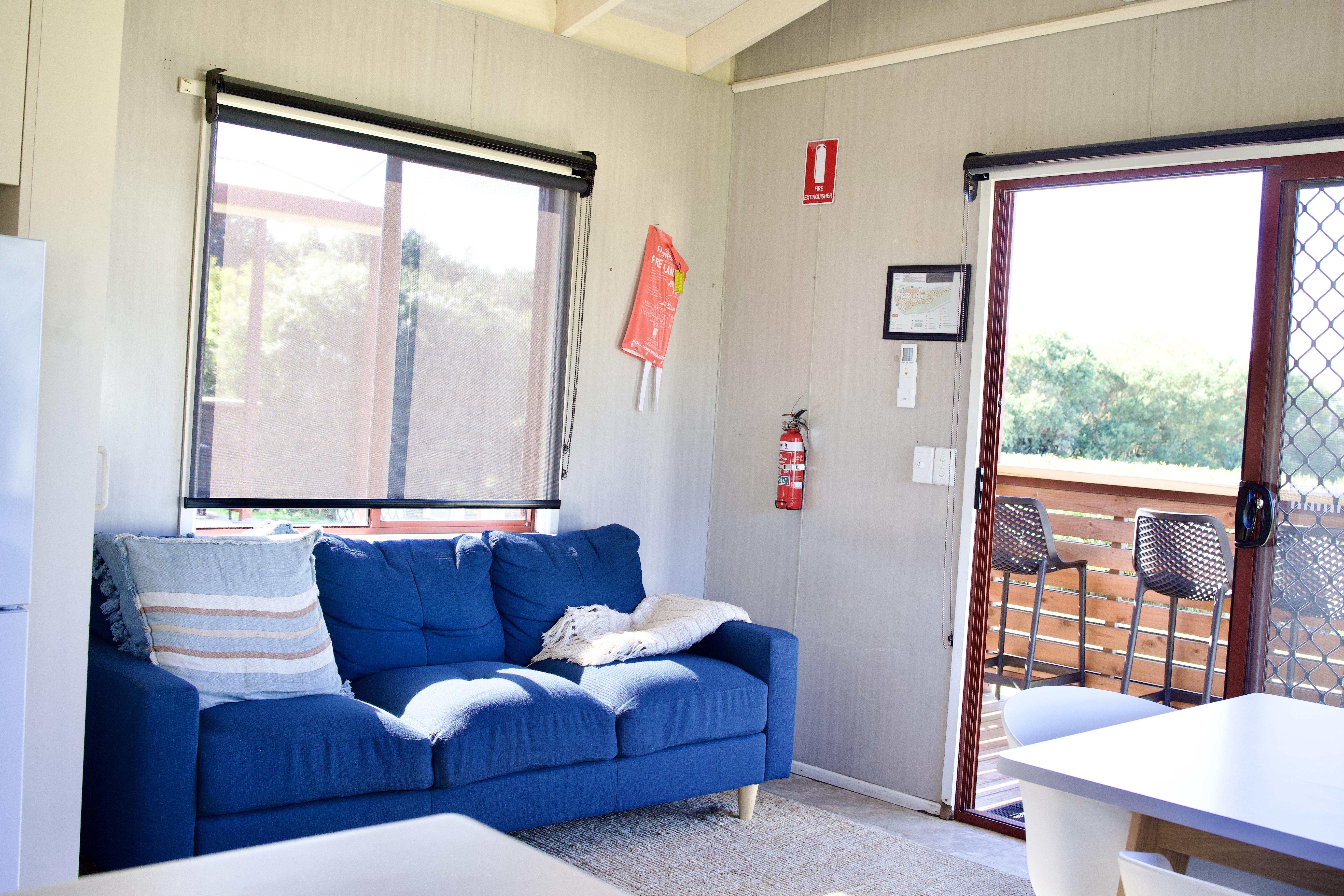 A perfect blend of comfort and nature, these two-bedroom cabins accommodate up to five guests, featuring a double bed and a tri-bunk configuration. Fully self-contained, the cabin includes an ensuite bathroom, full kitchen, lounge, and a spacious balcony offering serene sea views across Corner Inlet and Wilsons Promontory.